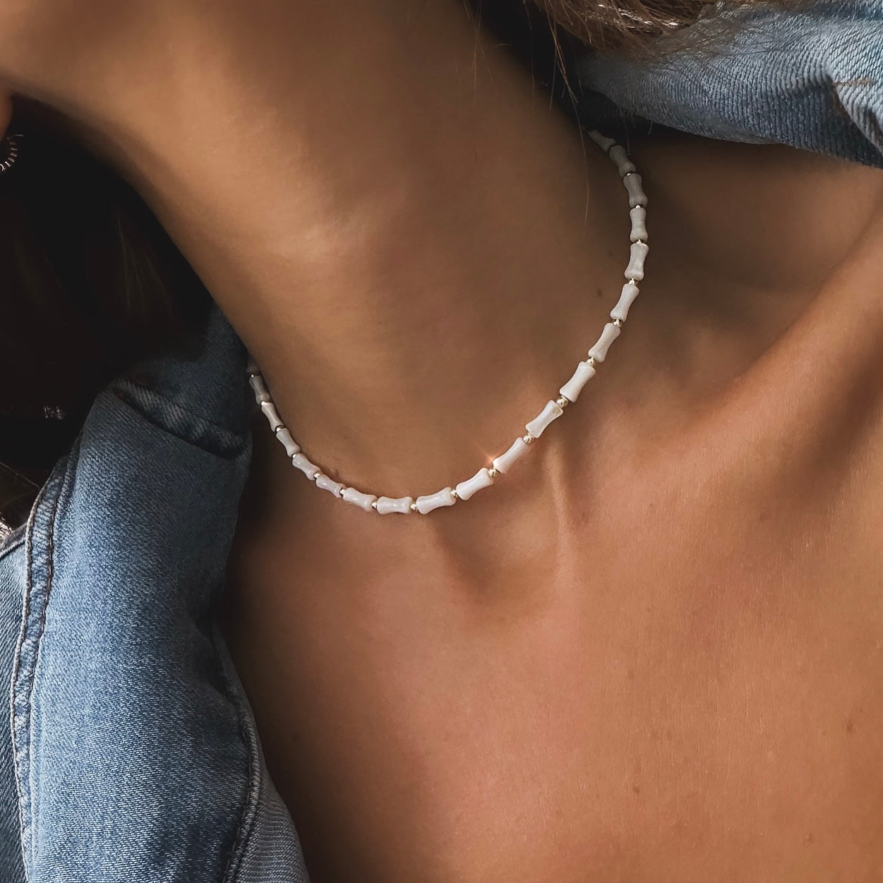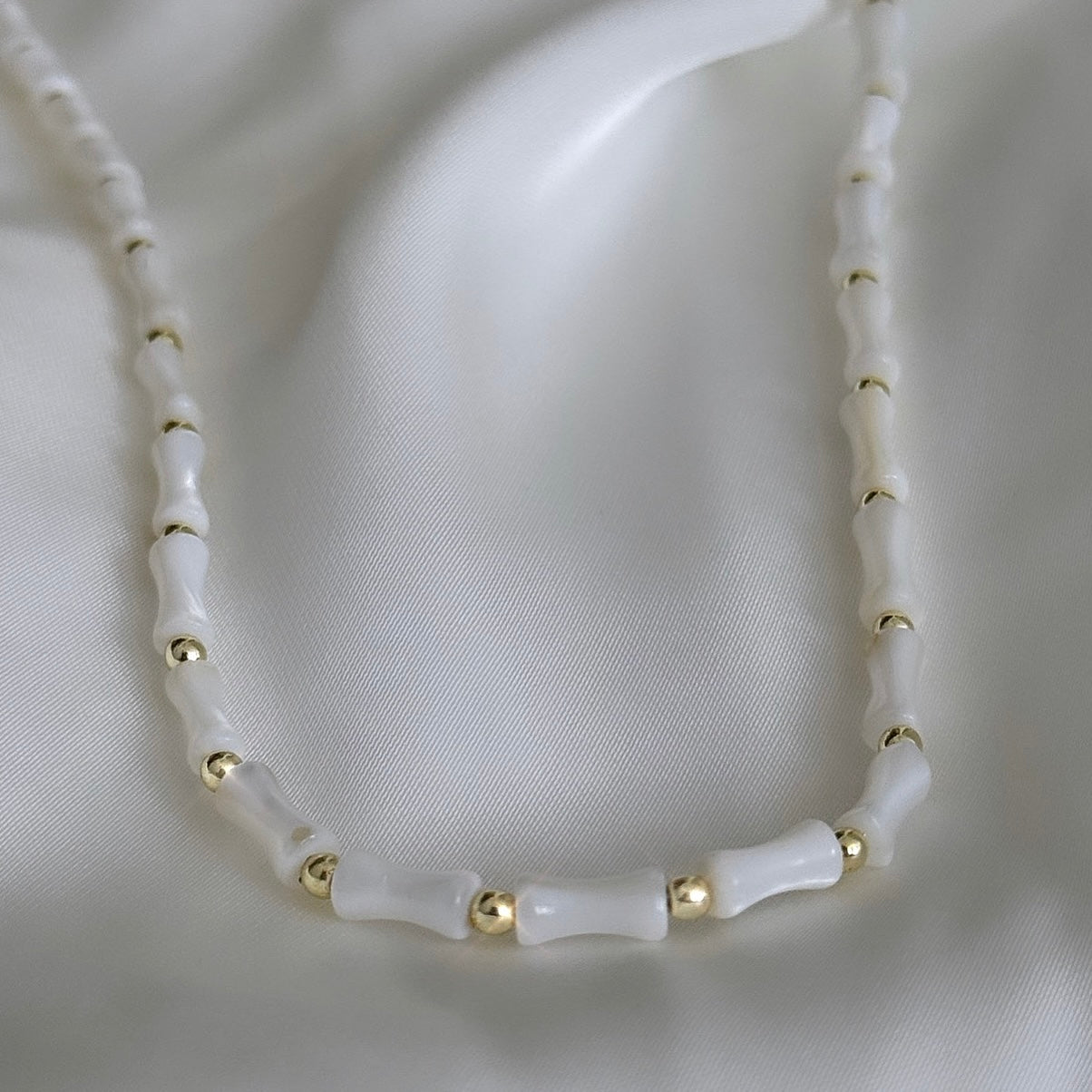 שרשרת מהפנטת בשילוב פנינים אובליות עם כדוריות זהובות