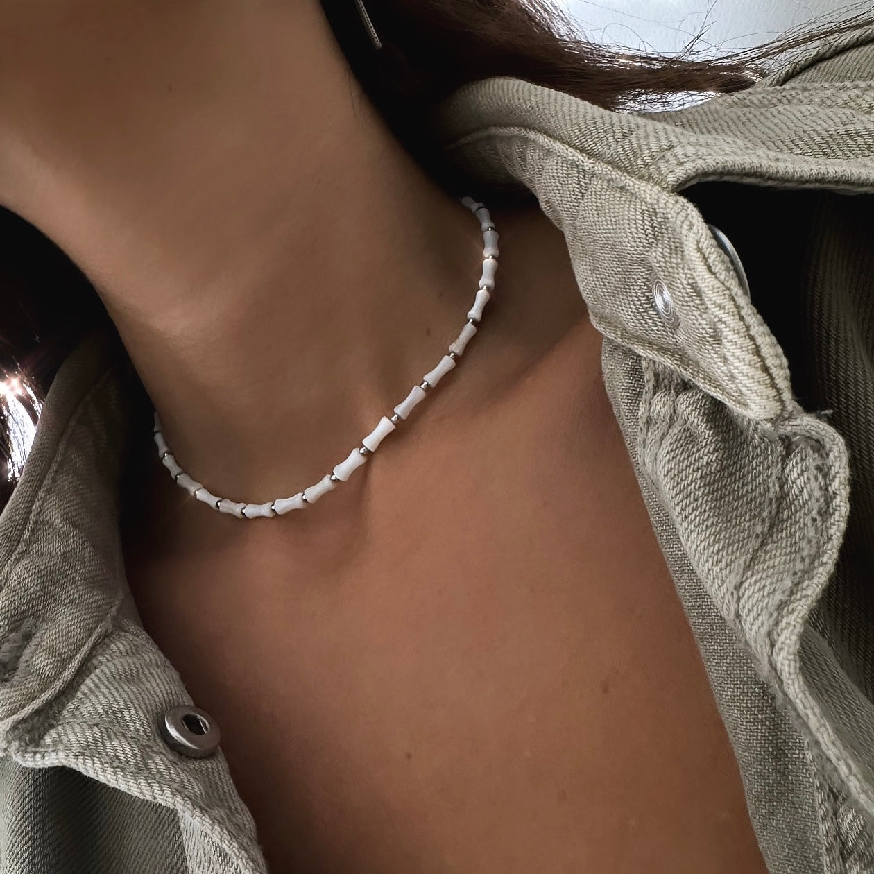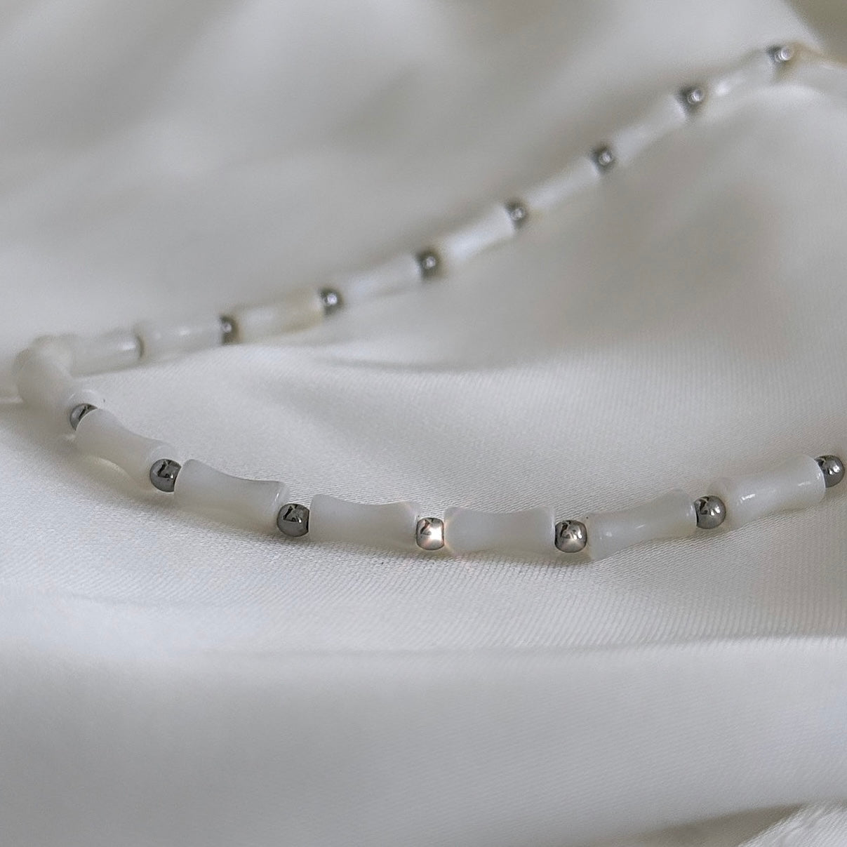 שרשרת מהפנטת בשילוב פנינים אובליות עם כדוריות כסופות