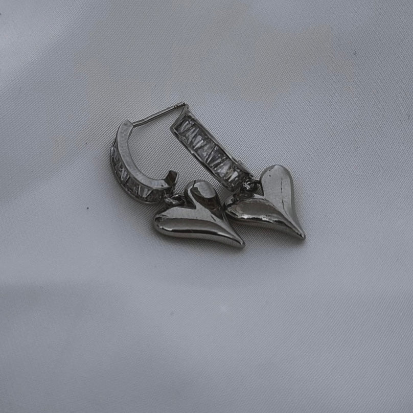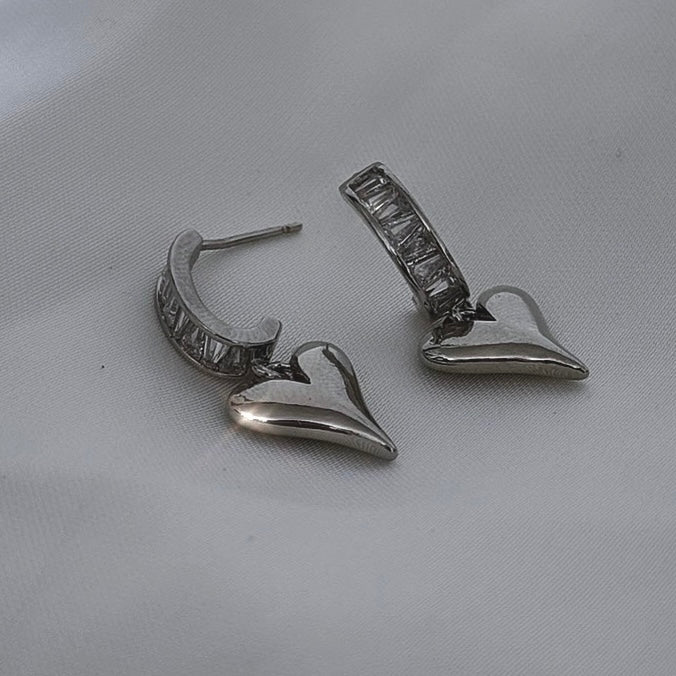 עגילי חצי חישוק משובץ עדין עם תליון לב