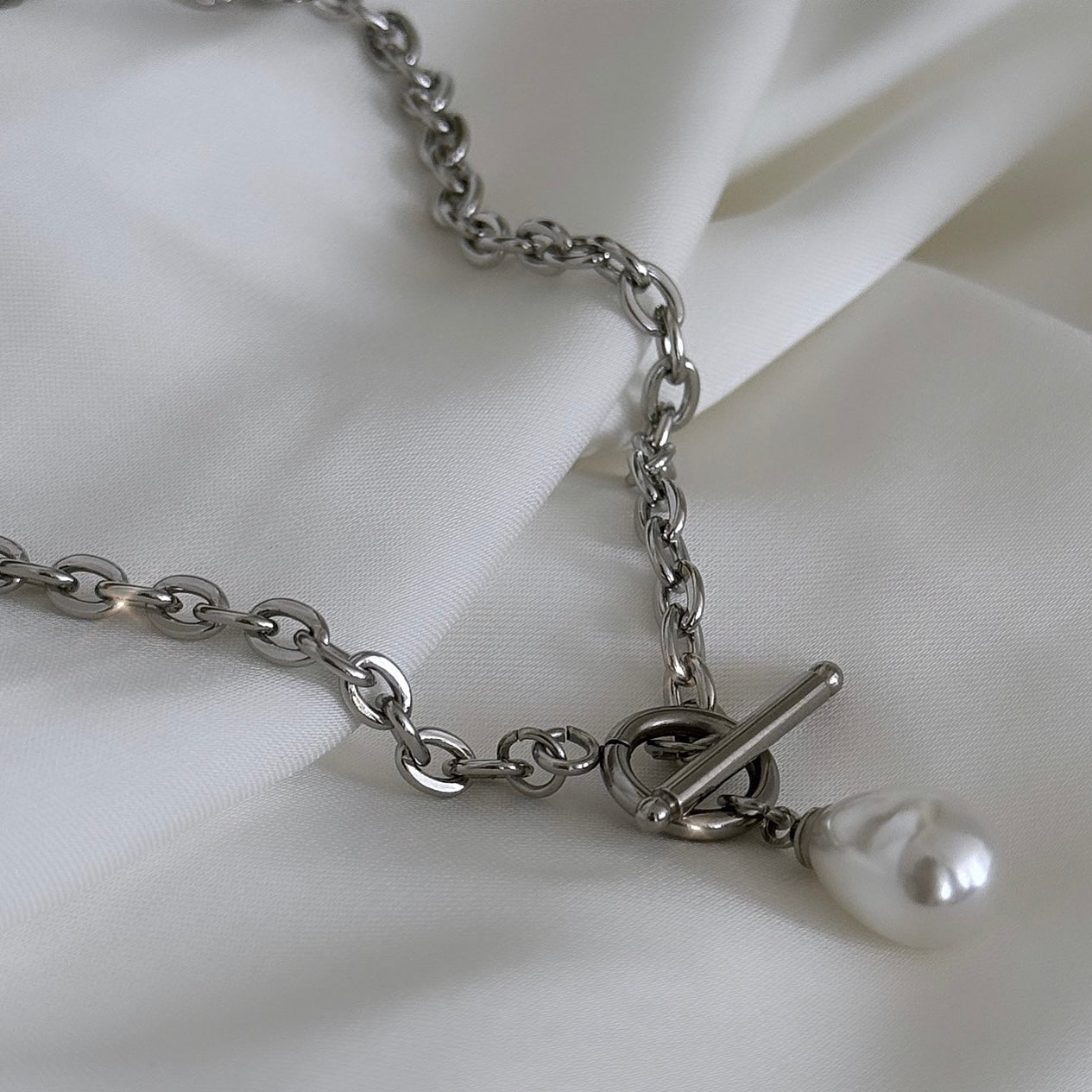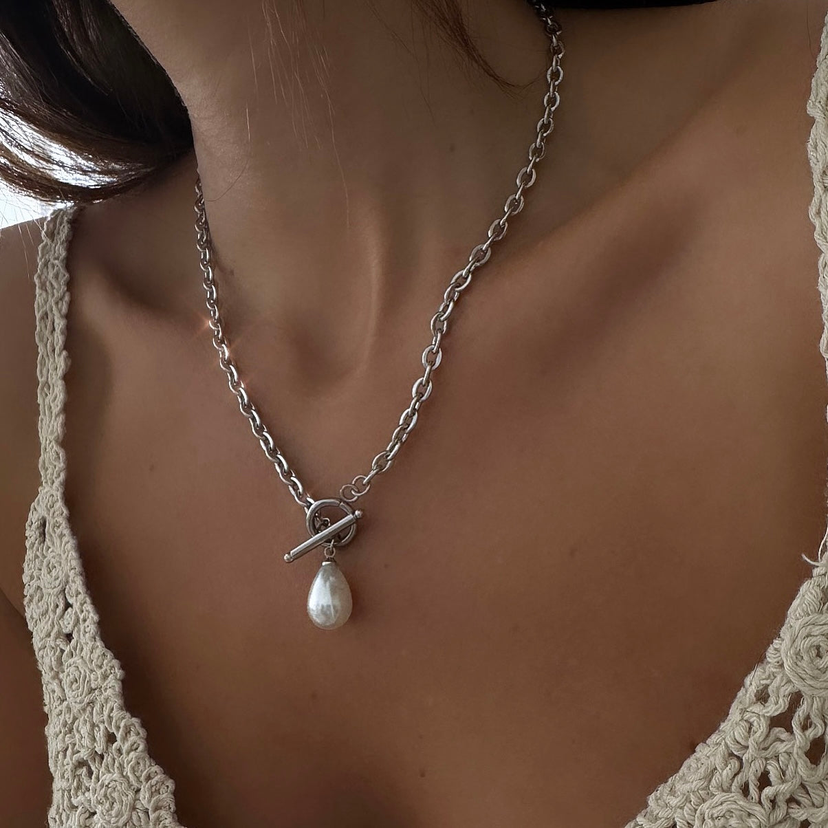 שרשרת לולאות בסוגר מיוחד בשילוב פנינה