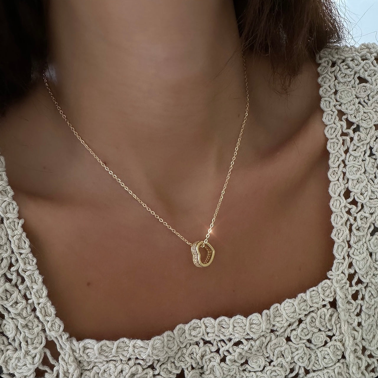 שרשרת עדינה עם תליון לב משובץ