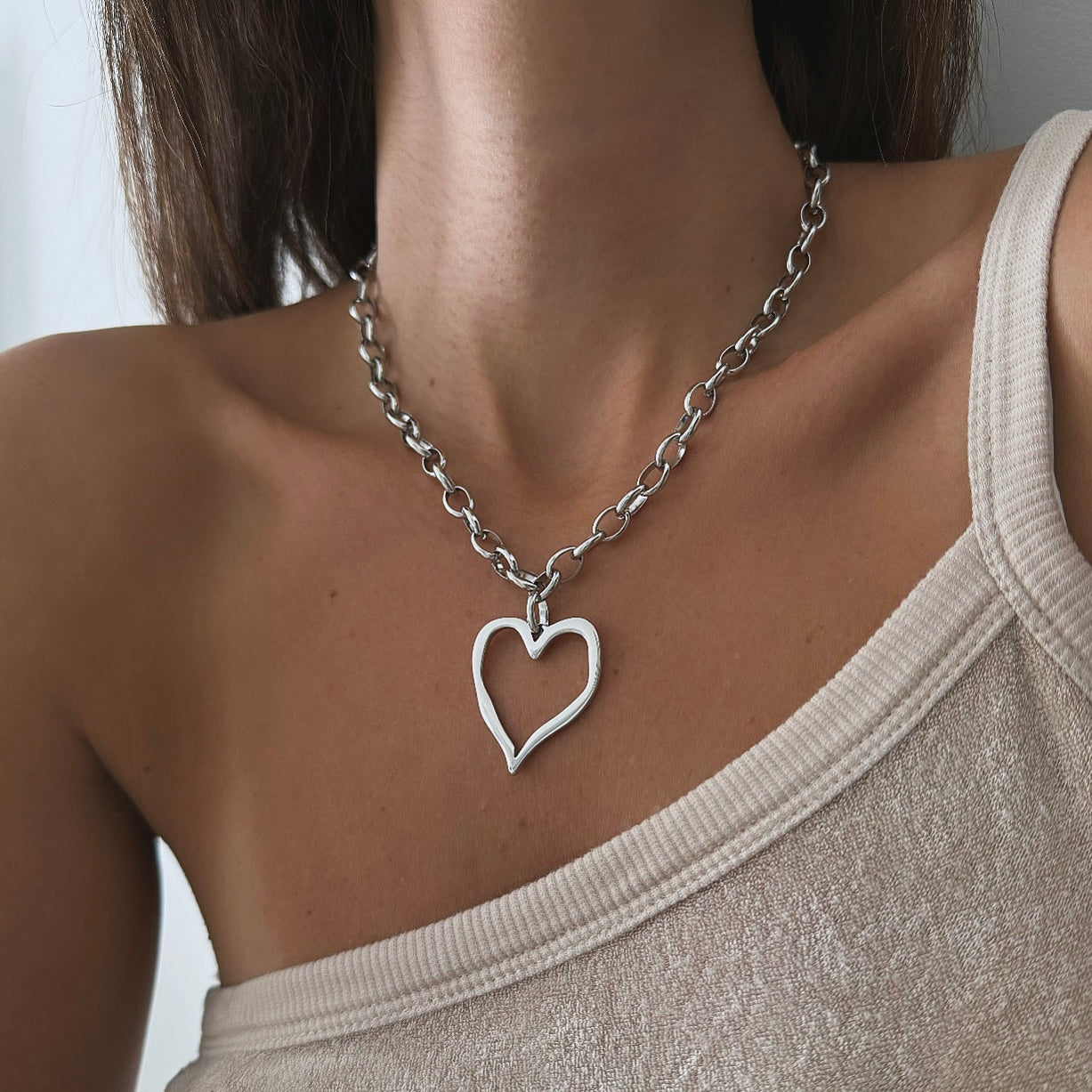 שרשרת לולאות מיוחדת עם תליון לב חלול