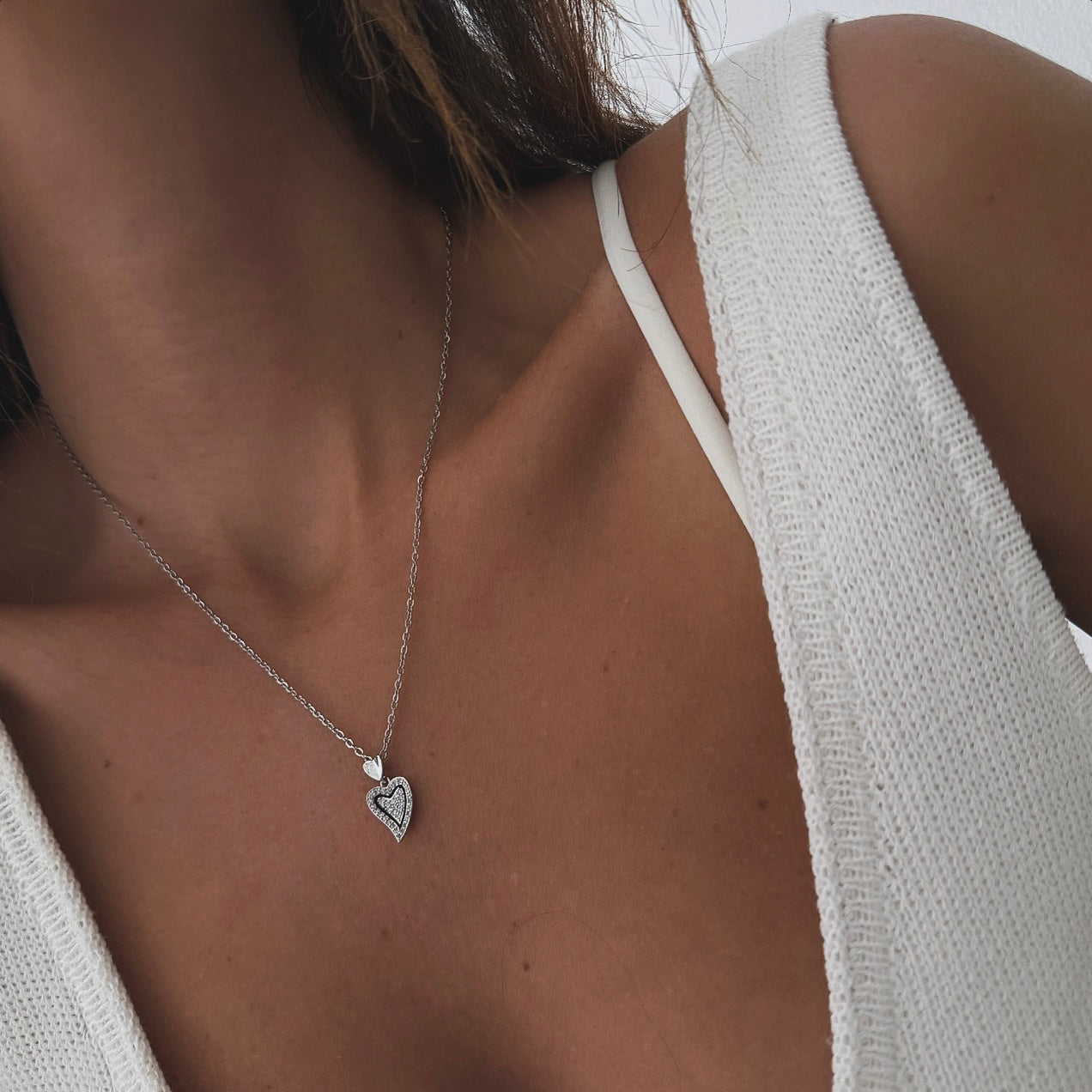 שרשרת דקה עם תליון לב משובץ