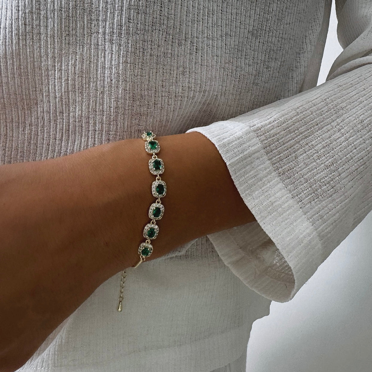 צמיד עדין בחלקו בנוי מזרקונים ירוקים