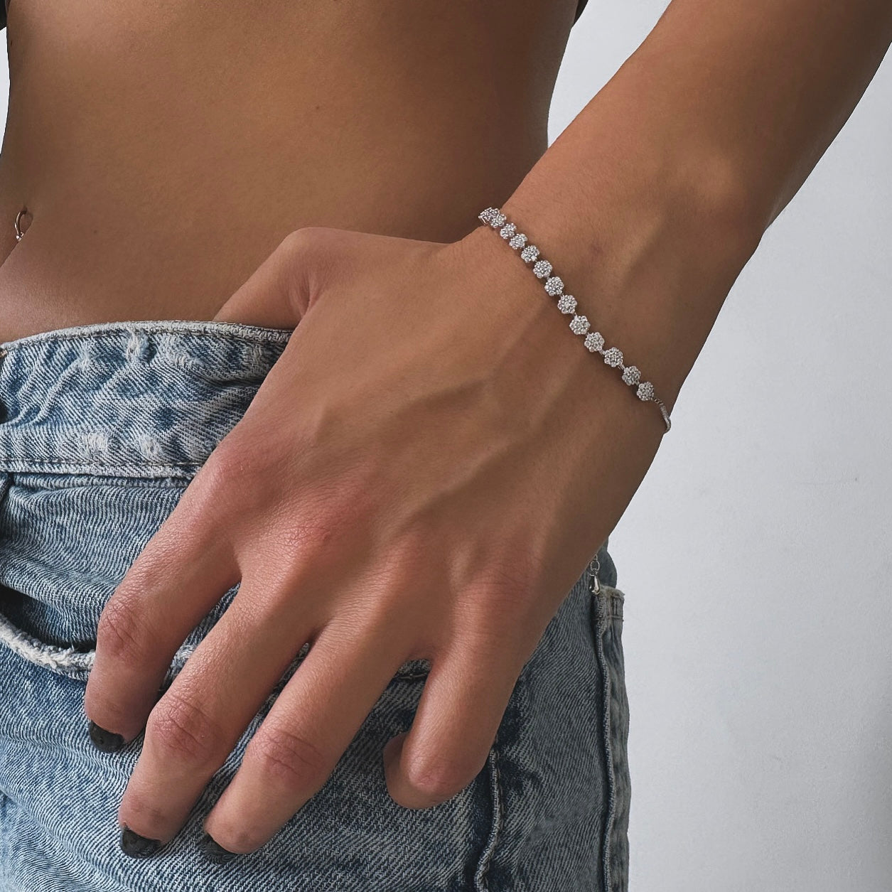 צמיד עדין עיגולי פרחים משובצים