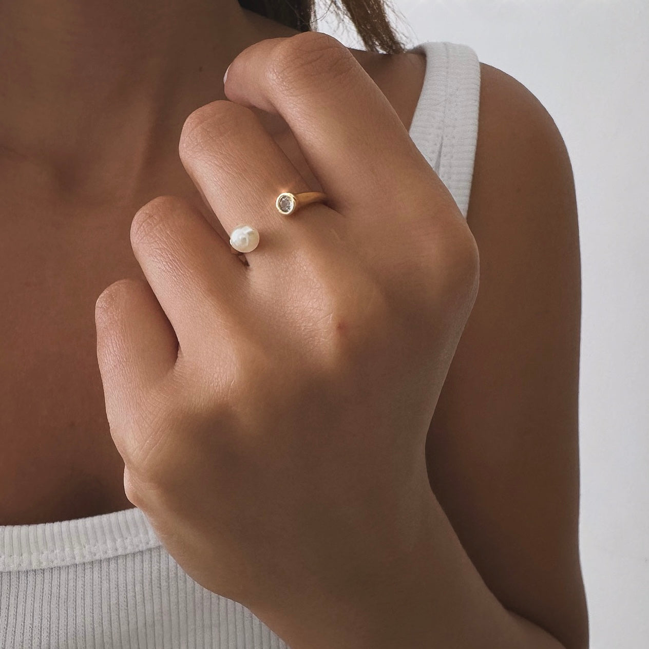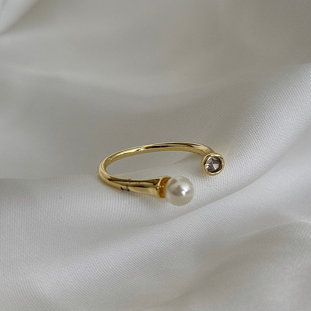 טבעת מדוייקת עם זירקון ופנינה עדינה