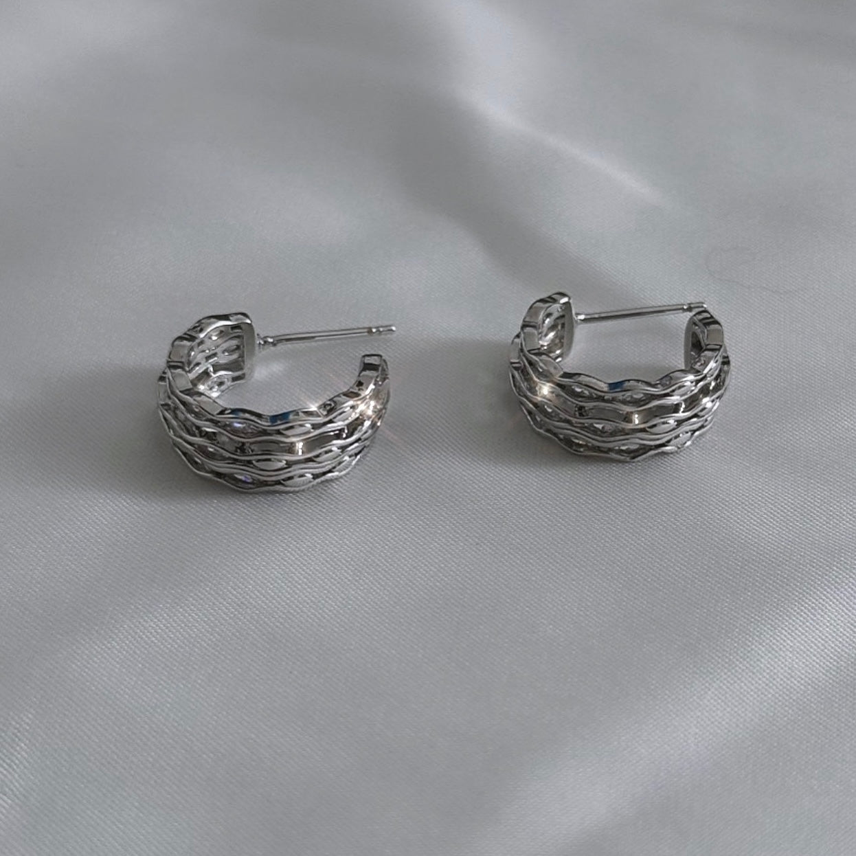 עגילי חישוק מעוטרים עם שיבוץ עדין