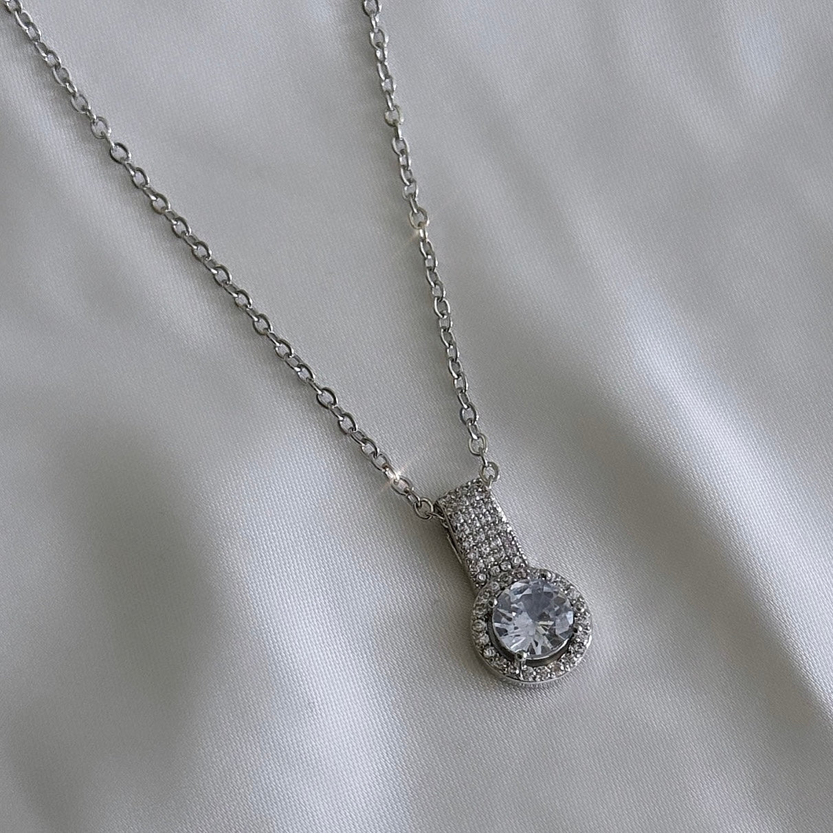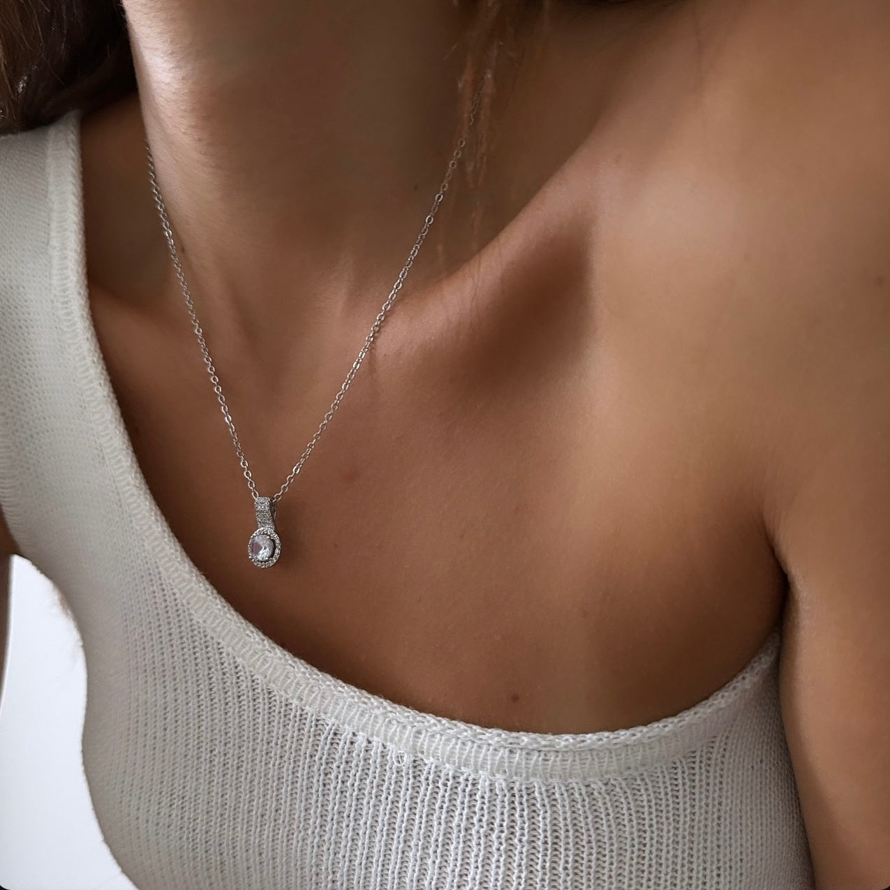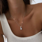 שרשרת כסופה עדינה עם תליון יהלום לב בשילוב פנינה עדינה ומדוייקת