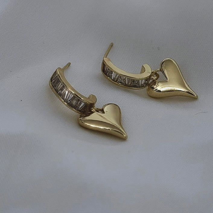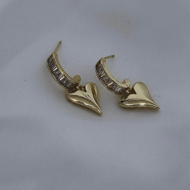 עגילי חצי חישוק משובץ עדין עם תליון לב